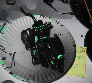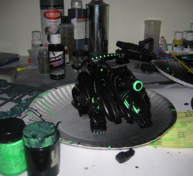I did the majority of the piece with an airbrush, and hand painted all the fluorescent green highlight. I took a break from the main body to work on the CP.