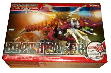 Death Raser is a Therizinosaurus-type Zoid created by the Empire along with Zi Arms Corp. Death Raser is a bipedal Zoid with thick, angular armor and a variety of weapons. The Death Raser carriers a total of four Plasma blades, two electric claws, two strike claws, a shock needle tail, tail sword, four laser guns, and an electrical discharger. The Death Raser was created alongside the Parablade which would enable the two units to form one of the three Zoids Dragons, known as the" Decalto Dragon".