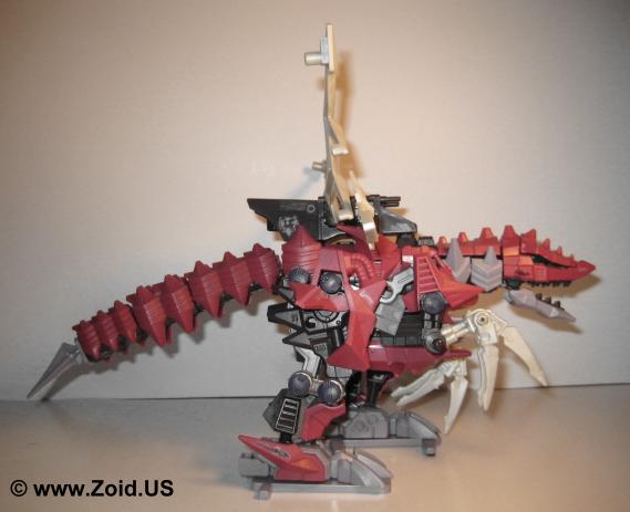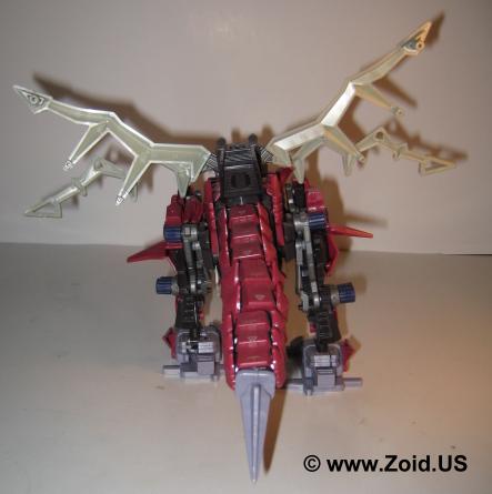 Another unique feature is the tail of the Death Raser. Titled the "Shock Needle Tail", it has the ability to manipulate magnetic forces. When the tail contacts the opponent it leaves behind a negative charge which makes the target prone to attracting metal. The effects are two fold, the first the Zoid that has received this misfortune is now an automatic target for any metal based attacks that come it's way, and second the Zoid will attract any scrap metal in close proximity weighing down the unit and becoming a major annoyance when it starts to disturb movement and limit sight.