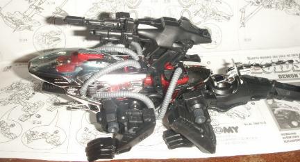 The Zoids 2 Demon Lizard is on the top of my Zoids 2 list of favorites. Building this unit was very enjoyable, and the end results well worth the search to find it. I am partial to the Zoids 2 series as they all have a decent amount of chrome parts, and Demon Lizard is no different. The box shows a set of pilots (Mind Riders) yet my box only contained a solo gold pilot. I was recently informed that some Demon Lizard Zoids2 had escaped from the factory, and thus are more rare than some may know. The one that I obtained is an example of this. One can tell by observing the legs, on the "normal" units released they were molded in grey, and the prototypes they are molded in black.