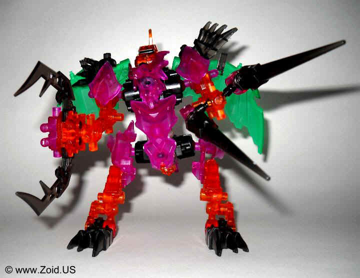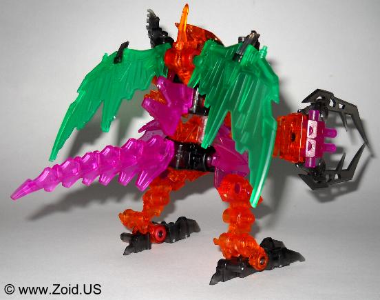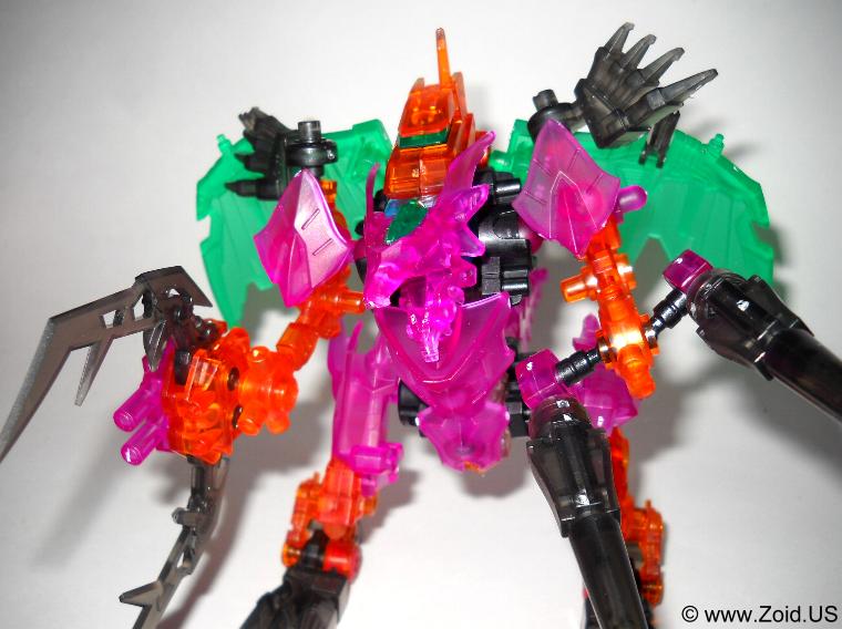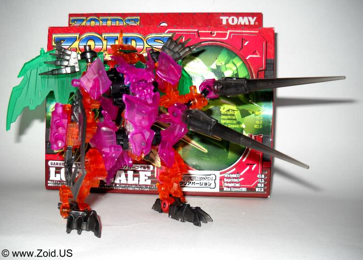 The first Clear Zoids were Z-Point exclusive and included Red Horn, Death Saurer, and Molga. These three pieces form the base of the initial Clear Zoids releases. Years later we saw a Clear Zoid resurgence with the trio of the Genesis Ligers, and finally a TRU exclusive Clear Gojulas. Holotech Zoids are sometimes referred top as "SVC" or Special Color Version Zoids. These Zoids retain either their own regular colors, or in some cases brand new color schemes but they all have one thing in common they DO retain some form of color. The Clear or Crsytal Zoids are more transparent versus the Holotech Zoids which tend to be more translucent in nature. Though neither set fits the exact definition, I believe there's enough distinction in appearance to warrant them being separated into two groups.