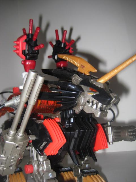 The Energy Liger build is also unique. Although it is based on a normal Liger frame, the unit makes use of battery powered air pump representing the Energy Charger. The Energy Charger consists of two large bellows that supply air " tachyon particles" to the Liger's movement or weapons system. The mode can be selected and as a result of selecting the movement mode the air travels through the tubes and into the wings allowing the wings to fold and unfold as the unit walks forward. The real treat is when the weapons system is selected. The air is directed to the weapons successfully setting the charger gattling spinning and animating the dual charger cannon which pulsates back and forth. Being one of few antagonist Liger's the Energy Liger is an excellent piece to add to your collection. The animation on this piece is truly a sight to behold, and puts most "modern" toys to shame with it's air pump technology. The armor holds on surprisingly well, and my piece does not shed at all. } The colors compliment each other very well, and it is worthy to note the distinct ancient Zoidian runes found on the horn which are later seen in the Genesis line on pieces like Gil Dragon. Perhaps foreshadowing proof that the Energy Liger was indeed the legendary "Alpha Zoid"? Although becoming a bit on the rare side you can still land this bad ass for around $40.00-$50.00 US, and it's worth every last penny.