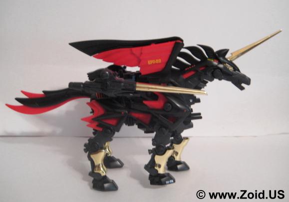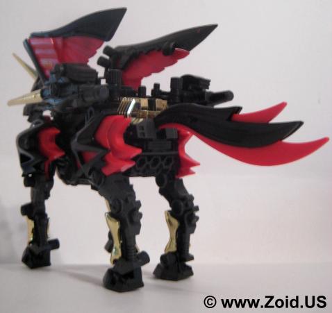 Evil Pegasus is one of the largest flying Zoids that would ever be created, it's quick, capable, and very agile for it's size. Evil Pegasus is also very well equipped featuring a dual set of armor busting electromagnetic beam cannons, four missile pods, dual Accelerated Shock Cannons, and one Thunder Blade mounted directly on it's head. The Thunder Blade was used not only to ram, but to also impale any enemy unfortunate enough to meet this beast head on. It is said that the Thunder Horn is capable of penetrating even the thickest of Zoid armor. Evil Pegasus also had a vast array of impressive equipment including dual Active Radar, dual Cooling Radiators, seven High-maneuverability Boosters, four Metal Protectors, and Power Connector or Grade Up Port.