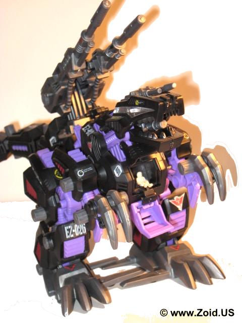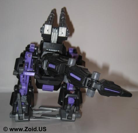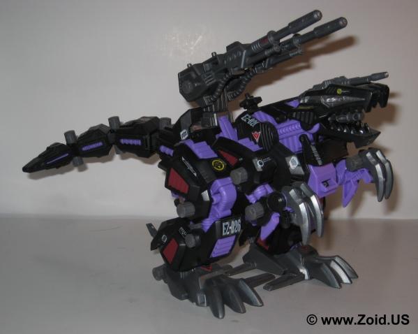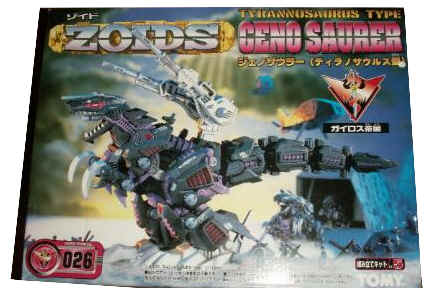 Geno Saurer was first releases as part of the NJR line in 2000. The kit is a longer build, although not as intricate as the Berserk Fury, the final result is just as satisfying. The Geno Saurer is a staple in the Zoids universe and should be the same in any collection for around $40.00-$50.00US. The kit comes with two figures of Raven, replacing the normal seated grey pilot figure. When power on the unit stomps forward, moving it's arms, chomping it's jaws, and swinging it's tail. The eyes of the Geno Saurer blink with an eerie red glow as the unit makes its way forward. It's unique to note that the cockpit of the Geno Saurer is located in the chest instead of the head which makes the build a bit more intriguing than your average Zoid. Colored in black and purple, Geno Saurer also saw a 2003 Hasbro release along with an NER release. The Hasbro and NER version are harder to find, the contents and colors are the same and the only difference is the outer packaging. Toys Dream Project released the "SCV" or Special Color Version of Geno Saurer in 2004. Although harder to find, this version is usually not very sought after as there is not much of a change, and the only change is the black pieces being replaced by charcoal gray pieces. Overall the unit is rather bland. Current rate for this kit is approx. $70.00-$100.00US.