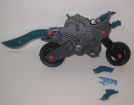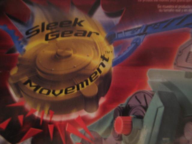 Gravity Zoids all have the same "gimmick". A battery-less motor operated via a rip cord. Why Hasbro would want to create something that is non-battery powered is an enigma that evades me. I believe one of the first toys that operated via rip cord action was the gyroscope. Since the gyroscope many toys have made use of the toothed cord of plastic. From cars to action figures rip cords provided non electrical power to varying degrees of success. Hasbro choose to re-name the non-battery powered motor: "Sleek Gear Movement", and advertised this "new" Zoids evolution on the upper-left hand corner of every Gravity Zoid box: