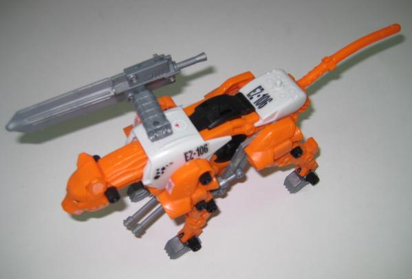What Zoids line up would be complete without a feline addition? EZ-106, or the Gravity Saix is the next creature in the Gravity Zoids line. This sleekly designed Cheetah type Zoid is another one of the three better designs. Build is relatively short, and appearance is nothing short of spectacular.