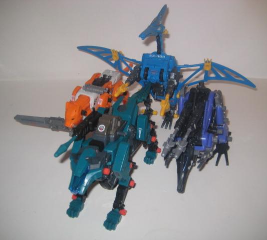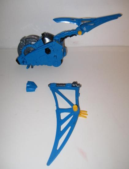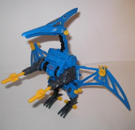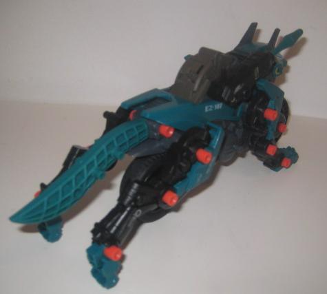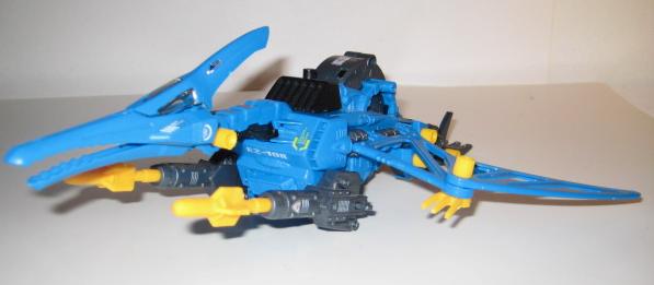 Last and defiantly least there is EZ-108 or Gravity Ptera. Needing an arial bomber to round out the line Hasbro settled on the old stand by..... Pterodactyl. I'm usually a big fan of Ptero designed Zoids, but not so much of this particular piece. I don't know what the hell happened on this one. Hasbro dropped the ball, and we wound up with a Zoid that was not even worthy of seeing a second release in the Fuzors line. It almost seems as if Hasbro tried to execute the whole vehicle design thing into a Zoid again and this time failed miserably.