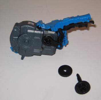 To make the internal parts spin, you insert a ripcord into the motor base. The ripcord's teeth work with the teeth on the spin gear pictured above. When you pull the ripcord, the spin gear, will spin setting the off balanced weight disk in action. The weight disk gains momentum and powers the gear located on the outside of the motor unit. The outer gear spins and activates the rest of the Zoids parts making it run just like a normal Zoid.