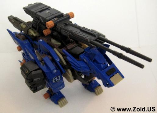 Although lacking any long range weapons, the Konig Wolf is well equipped. Konig Wolf sports electron bite fangs, strike claws, and a set of double barrel multi dis-chargers. What sets the Konig Wolf apart from other Zoids are not it's weapons, but rather it's special headgear equipment. A set of goggles are connected to the back of the neck and when activated they fold down over the cockpit giving the pilot a variety of special abilities including night vision and precision targeting. These advanced optic abilities make the Konig Wolf a very deadly as well as effective night specific Zoid. The Konig Wolf can achieve speeds of up to 180 Mph allowing the unit to strike a lightening speeds under the cover of darkness.