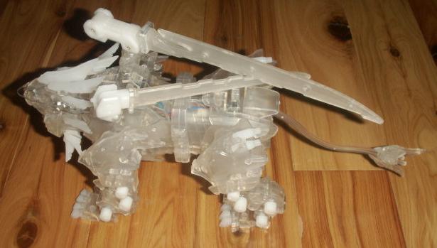 The Holo Tech or "HT" version of the Mugen Liger is stunning. This was the last of the Holo Tech Ligers I needed to aquire to complete the set. This piece came directly from Japan, and also with a larger price tag. Both the wait, and the cost were well worth it. One of the three ligers that were obtained only by purchasing the Zoids DVD Boxed sets and sending in the coupon. A stunning piece!