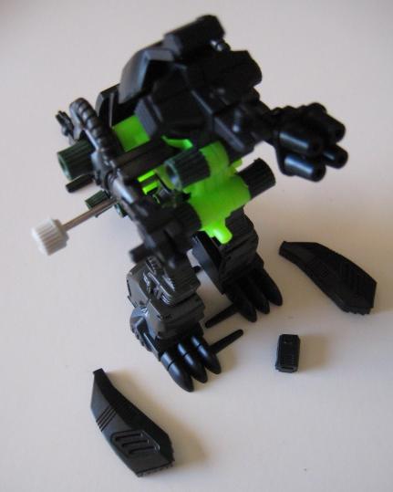 With quite an array of weaponry it becomes clear that Iguan is a solid choice for a basic infantry unit. Also taking into account that it only takes one pilot for each unit, the Pilot to Zoid ratio is very reasonable. The flexible booster system enables Iguan to make sizeable leaps, increases speed, and is reportedly even able to allow the unit to utilize the ability of its leg for a kung fu type kick attack. Iguan as a standard unit is lightly armored, which was a significant downfall. As a Guylos Specification unit, it's armor would have increased and its booster system would allow even more mobility increasing its versatility exponentially. Let's take an in depth look at building this unit.