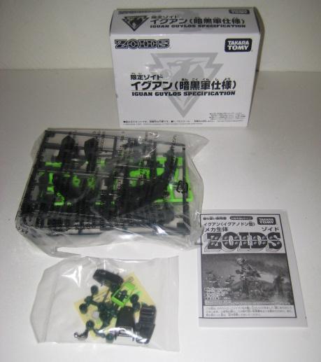 Iguan is a Iguanodon type Zoid, based on the ornithopod genus of dinosaurs. Featuring large thumb spikes for defense, Iguanodon translates to mean "Iguana Tooth". Iguan was originally created by the Zenebas Empire and was the standard infantry unit used. Like other early Zoids, Iguan was designed to be used alongside other Zoids like Malder and Molga. Iguan was unique in it's two legged or bi pedal design which allowed greater range of movement when compared to it's fellow four legged (or wheeled) counterparts. Iguan was reinstated years later by the Guylos Empire. Iguan made a good choice for many reasons including its ability to be mass produced easier than other units, its freedom of movement, and it's natural choice for a standard infantry unit. We can only assume that the 2008 Wonderfest release represents the true form of the Guylos resurrection of Iguan in which they used Deochalcum to considerably boost both it's attack and defense capabilities.
