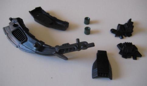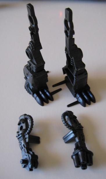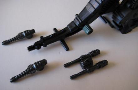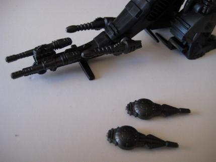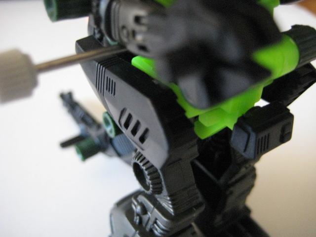 The last step attaches the dual tail cannons, upper tail mounted guns and "ear" cannons.