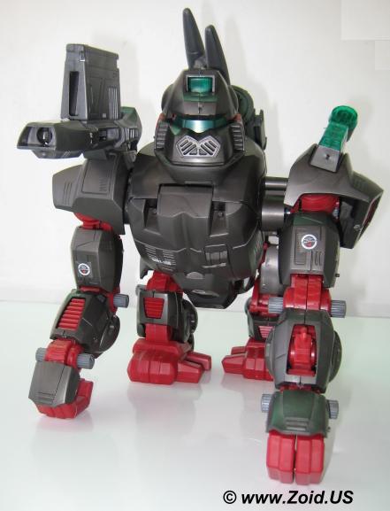 Created by the Empire. Iron Kong is a Gorilla type Zoid. Different versions of this Zoid were used by both Zenebas and Guylos Empires. Iron Kong was specifically designed to counter the Republic's Gojulas. Iron Kong is a large and heavily armored unit. Although twice as fast as the Gojulas, Iron Kong is still considered to be sluggish. Iron Kong is very nimble for it's size, and it's prehensile thumbs allow the unit to climb, swing, and grasp. It is also very capable of picking up heavy objects and flinging them at anything (or any Zoid) in the distance. Iron Kong is able to make a fist and effectively use it to punch it's opponents in close quarter combat. Iron Kong was introduced en masse, and the Empire began it's strike with the deployment of 150 units which would eventually penetrate deep into Republic territory.