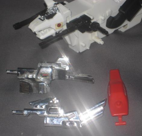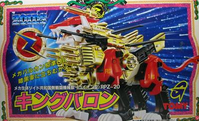 You may have noticed that (this) King Baron sports Silver instead of gold chrome. When I purchased him I was unsure of the Silver chrome's origin, and had thought it to be painted. I can tell you that it came this way from the factory. This finish is not dull and is highly reflective indicating that it was not altered by conventional paint methods. Under the chrome, the sprues are usually either black or a really translucent white (ghost Zoid) material, so it is unlikely that the gold finish "wore off", as the silver finish is evenly distributed and unmarred. My guess is that it accidentally got the wrong vacuum finish in the factory, perhaps God Kaiser?. This makes it one of my more unique, highly treasured, factory flawed pieces.