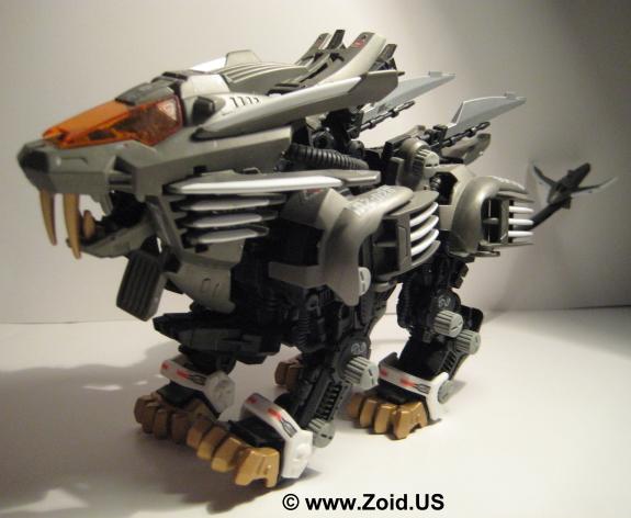 In 2004 we received the "Back in Black" version of Blade Liger. Known as Blade Liger "Black Impact", this version was released as part of the Zoids Fuzors line. With a charcoal grey color scheme trimmed in white, and solid black legs, Blade Liger Black Impact has metal teeth and fangs. It is speculated that it may have been released from left over stock of the never released Hasbro limited version of Blade Liger simply titled "Limited Blade Liger".
