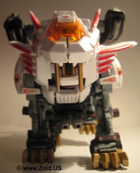Blade Liger is quicker and more maneuverable than it's previous incarnation. Modifications are included on everything from the weapons systems to the Energy Shield. The Energy Shield is now enhanced by the addition of four inter-cooling units that are vented through the fins of the shoulder armor allowing for quicker heat dispersion. Due to the merging with the Organoid, the Blade Liger now possesses an Organoid System allowing the Zoid to operate in "AI" mode, without a pilot. (This fact probably also accounts for the lack of pilot in many of the model's releases.) The Organoid system also grants the Blade Liger limited and highly powerful "power boosts".