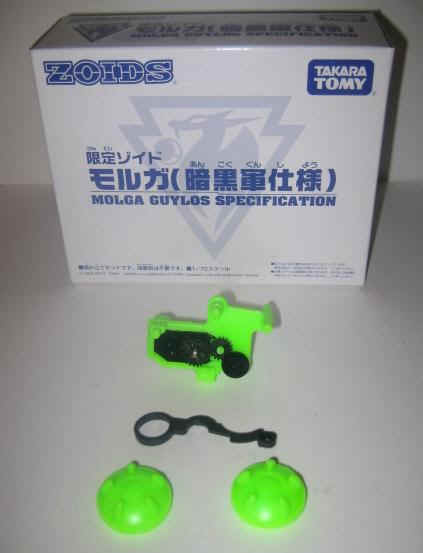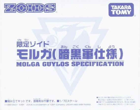 Molga was also released in a clear "holotech" or "crystal" version. This version was available with Z-points in Japan and was also released as a packaged special in Australia. Below are the Australia and Japanese release boxes. The pilot figure that accompanied both version was finished in blue.