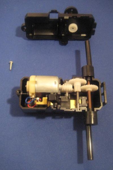 Inside is the classic Grade Up motor, three gears, and the battery contact wires.