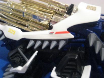 Gun Bluster is the King of Bling rivaled only by the Grade Up Zoids. Its a classic design that belongs in any collection. When powered on the unit moves forward at a dramatically real (slow) pace with its jaws chomping and the gatling guns spinning. The OJR is by far the best version. Getting harder to come by now it is worth actively seeking. Not only does Gun Bluster sport more gold than a pimp in 1985, it does so with a very imperious style that makes it unforgettable from the first time one is lucky enough to lay eyes upon it.