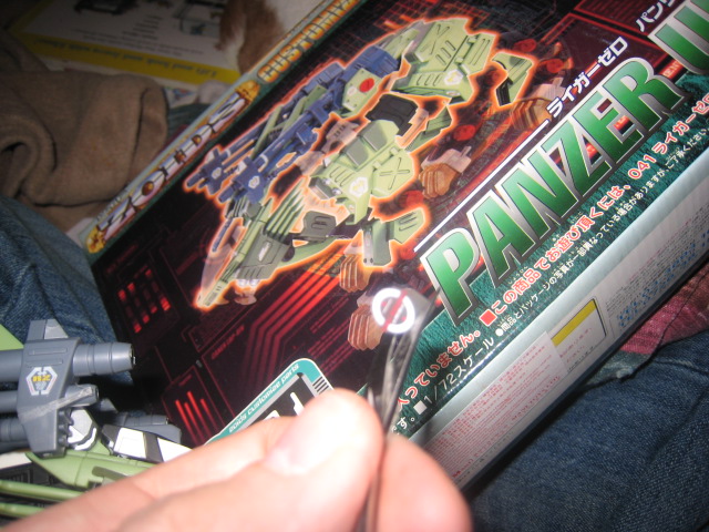 I have not done an in depth review for awhile, so I thought I would do one on the CP 21 or Panzer Unit. The Panzer unit is on of Liger Zero's three forms. As the name suggests this is a heavy weaponry conversion. When in Panzer mode the Liger Zero literally turns into a tank on legs. Also in this write up I wanted to cover some of the tools and techniques I use for trimming stickers. I have gotten several emails asking how I do it, and thought this would be the perfect opportunity to share with everyone reading. So let's begin out look at Liger Zero Panzer.