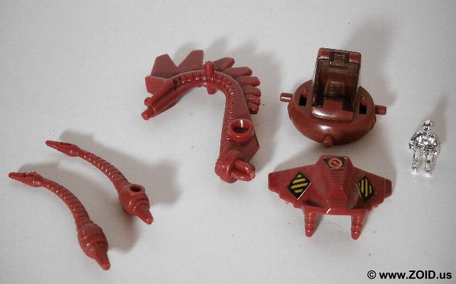 The build, although not complex, feels more compelling than the previous Original American Release Zoids. Hard to pinpoint, but it may be the inclusion of a battery powered motor. When holding the body of Serpent, it feels solid as compared to the previous Zoids, and mentally looks more complex with battery contacts and switches. With all the physical and psychological differences, some things remained the same, such as the chromed pilot, and the concept of the unit being a cross between a model kit and a toy. The head is assembled first.
