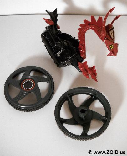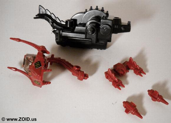 Moving on to the second part of this historic set, the Power Zoid known as Tank is an esoteric Zoid taking on a more vehicular appearance. Being well aware of the growing transforming robot trend, it seems as if designers almost wanted to "play it safe" with the release of Tank. Unlike the sleek and sexy lines of Serpent, Tank was purely utilitarian from it's boxy shape to it's saw blade styled wheels. Almost like an All Terrain Vehicle on crack, Tank also had wings and a protruding front cannon thrown in for good measure.