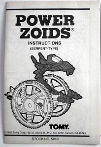 The instruction manual was the typical fold out sheet, yet offered another distinction that is still used in the hobby today. Under the name "Power Zoids" we see an important snippet of text actually defining the unit as a "Serpent Type". Previously, there were no distinctions of what the Zoid actually represented. Generic terms like "bird" were as close as we came to identifying exactly what the Zoid was supposed to mimic. I believe this is yet another quality unique to the Power Zoid, further crediting their creation as a huge contribution to the modern Zoids. The fact that this important information is printed on the instruction manual and not the box would suggest that this may have very well been an afterthought. To deviate from the finalized box art is a highly significant event, and in my experience, usually (if at all) involves the subtraction and not the addition of any graphics and/or text.