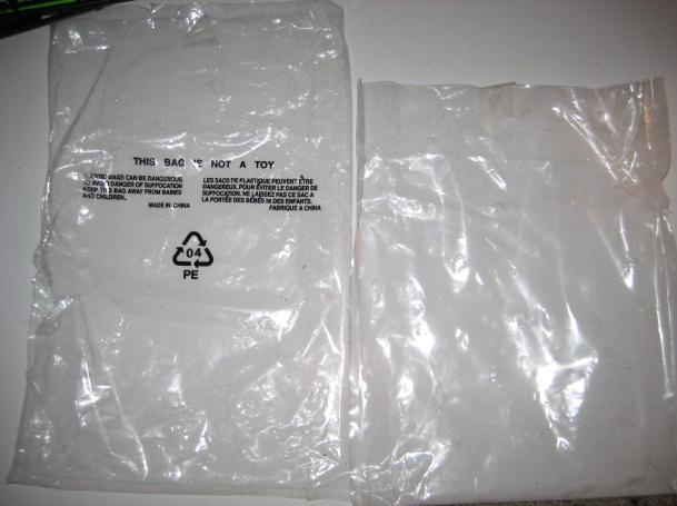 The outer packaging on the regular release version is clear, while the package in the official release contain the standard warning about suffocation. The official release bag is pictured below on the right hand side, the proto bag is to the left, It's interesting to note that while both bags have the same width, the proto outer bag is a full 2" shorter.