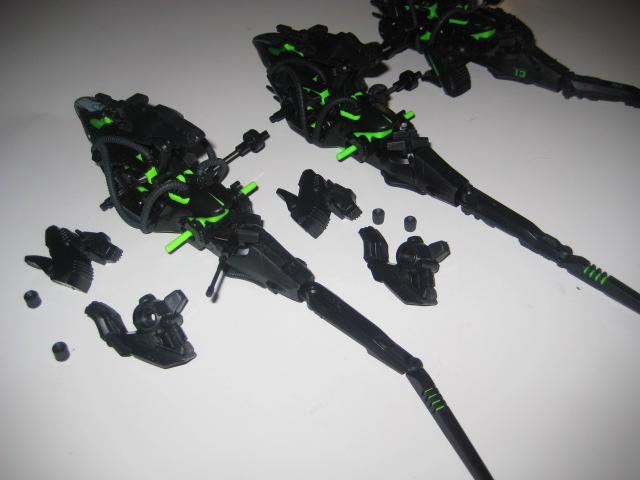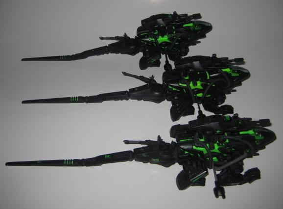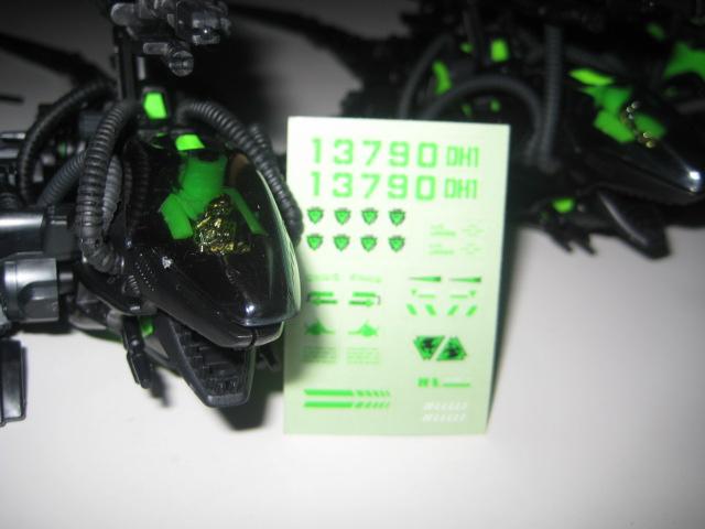 The unit is complete and ready for stickers. The Demon Lizard Techno Zoid version has some of the coolest stickers including a swordfish logo that adorns each side of the straffer cannon.