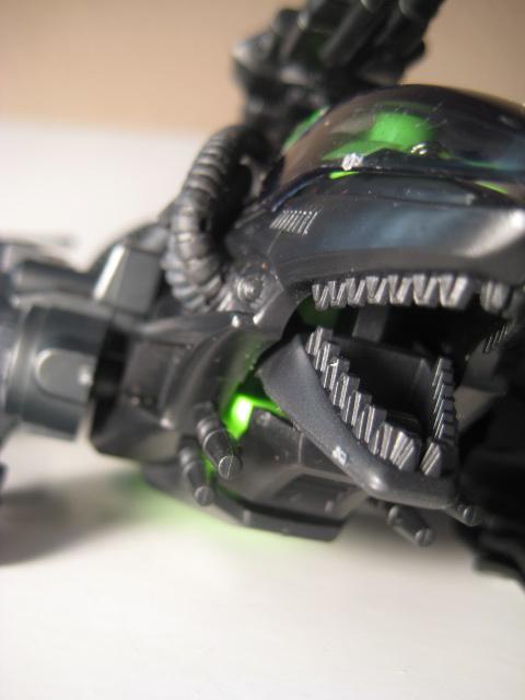 I do not believe this piece was kept for the box alone. Building the unit revealed nothing more than a couple of minor differences. The dark cockpit, black hoses, and lack of lower teeth I think qualify this piece for the "prototype" category. I cannot remember where I saw the black tube Demon Lizard listed as a "variant" but I can confirm that this is true.