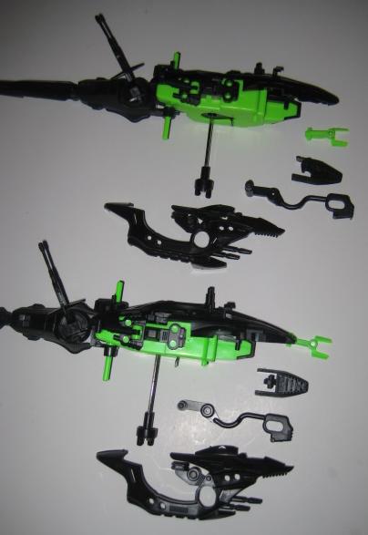 As you can tell, the shades of the cockpits are different. The one that came with the Prototype Demon Lizard is much darker than the standard cockpit color.