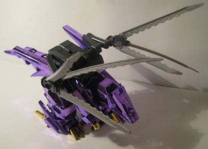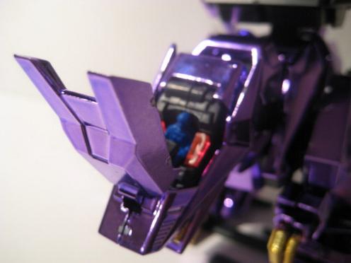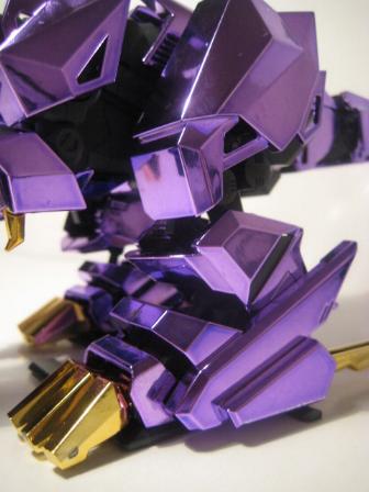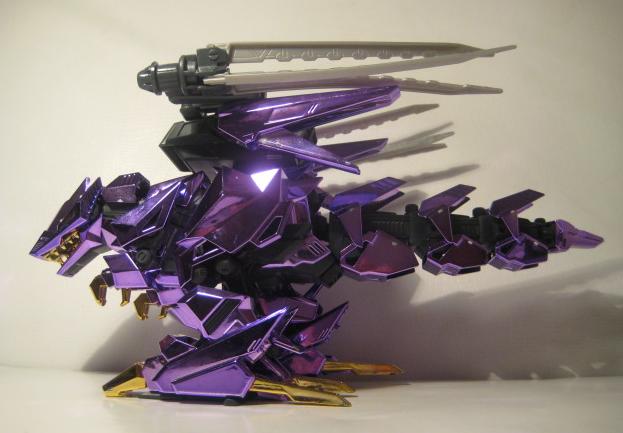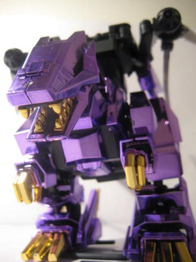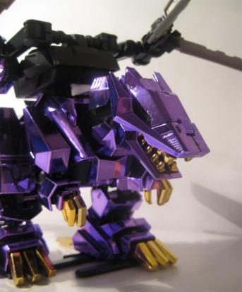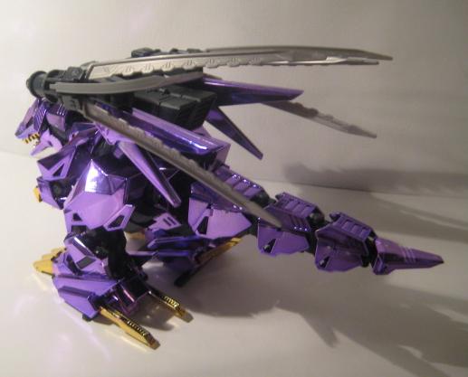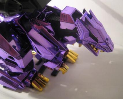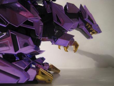 The Buster Claws are then fit into the back, and the unit is complete. I do not sticker my chrome Zoids, I don't think it looks to good and I also fear the acidic nature of the adhesive slowing eating away at the chrome finish. This piece is just magnificent, a true sight to behold, it looks even better in person. The Chrome Purple lends the feel of "royalty" to the piece, and the gold accents are just right and not overdone.