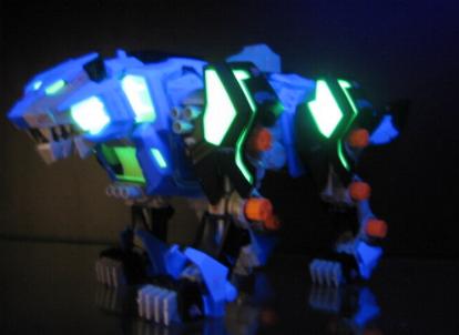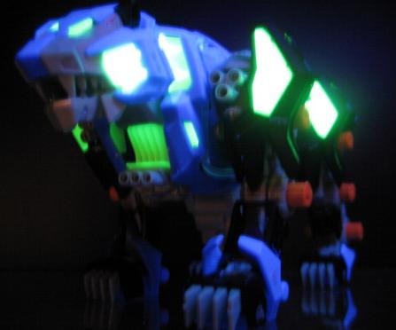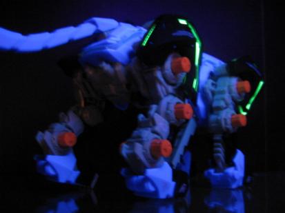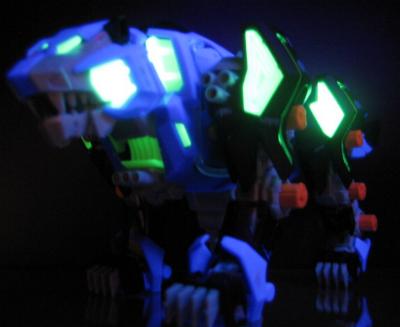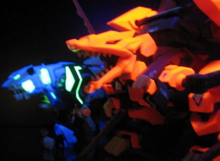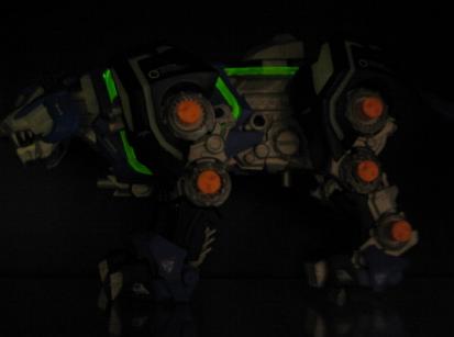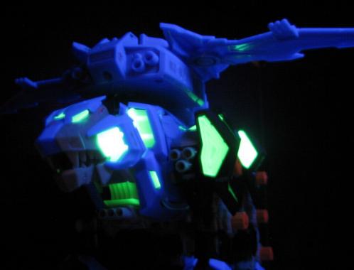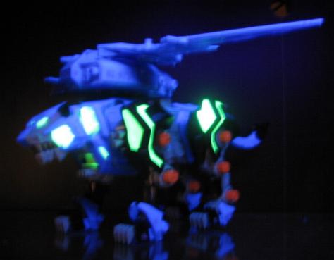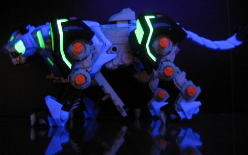 With Rayse Tiger complete, I wanted to continue the review to "show off" some of it's unique attributes. The glow in the dark features are awesome, but hard to photograph properly. When I finished my display cases, I installed black lights specifically to show off Zoids that have the ability to fluoresce. I took the opportunity to take some shots of Rayse Tiger.