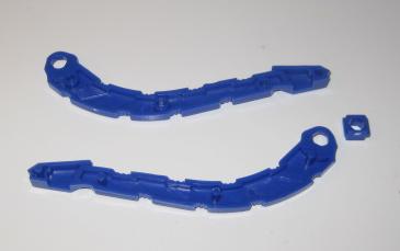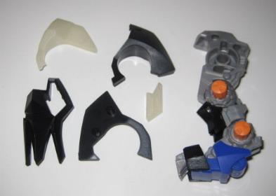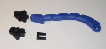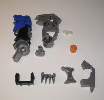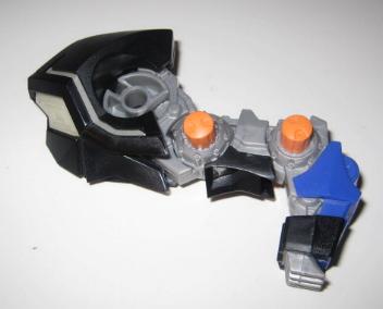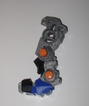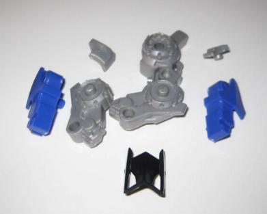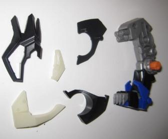 Next, a shoulder plate is fitted on each side of the body, and one strand of cable is ran through the opening. There is also a glow in the dark piece that is fitted into each shoulder plate.