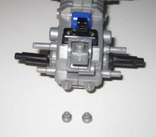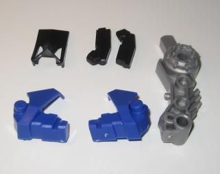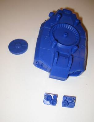 Next, we start the work on the body unit. This includes placing the two neck pieces, dual chest guns, triple chest cannon, on/off switch marker, and glow in the dark chest panel.