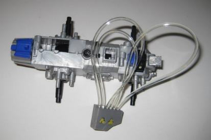 It's really a shame that this was not finished, although it does not look too hard to actually wire the unit to work as originally intended. I reassembled the back pack and continued the build. Construction starts with assembling the head, which is made up of 2 side facial pieces, 1 eye piece, and a lower jaw piece.