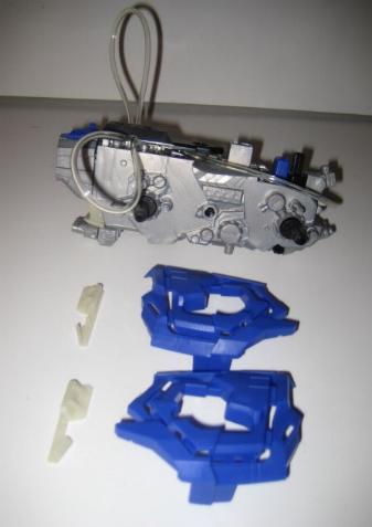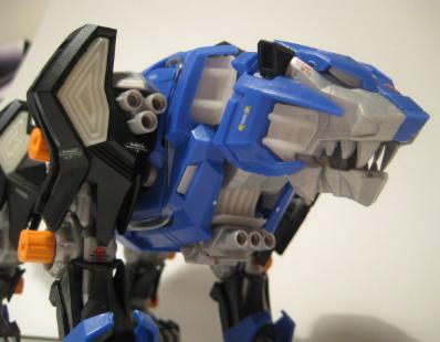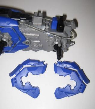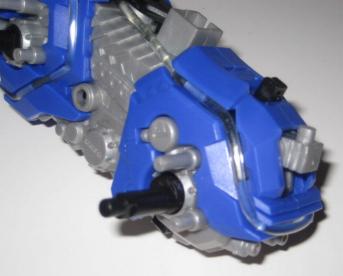 Note this unit looks like it was originally intended to have a functional grade up port, but looks like it was abandoned before release. The picture of the Rayse on the box does not show the port cover. It would have really been nice to have a functional grade up port on this Zoid. I also noticed that the head is able to be moved up and down, most likely to activate a switch that was also not included on the final release. Being the last Zoid to be released on the Republic side it's really a shame that more time was not devoted into making this unit what it could have been.