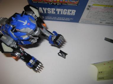 The back of Rayse Tiger's box features a couple of alternate builds. The first is sort of a heavy arms version of the Tiger. This conversion states that parts from Whitz Wolf and Savinga are used.