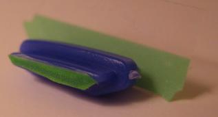After completing the stickers, I though that the unit was missing something. A look at the eye pieces revealed exactly what it was. It was missing glowing eyes of neon green doom, and luckily there was enough extra green sticker to cut out some custom eye piece covers. I disassembled the head, and went to work.