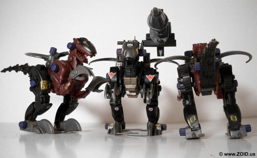 Raven Raptor had the honor of being modeled after one of the most feared and vicious of all dinosaurs, the Velociraptor. The Velociraptor was smaller than many think being about the size of a turkey, and also lacks the feathers that it was now believed to posses. Being one of the first Zoids making use of the Organoid system, the Raptor was superior in intelligence and had heightened agility and response capabilities. Designed for close combat, the Raptor does not normally mount any long ranged weapons. Created by the Guylos Empire, the Raptor relied on it's plethora of close combat style weapons including killer fangs, two large back mounted "Counter Scythes", a set of Hyper claws, and finally a set of Harken claws. The unit is also consider low on the equipment side making use of a single ion charger.