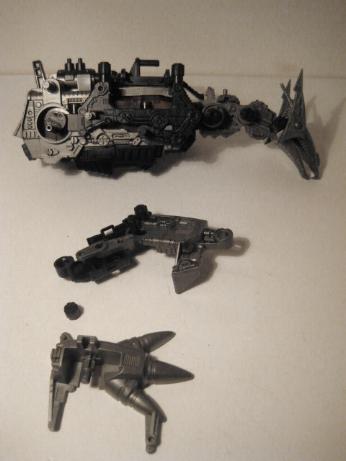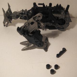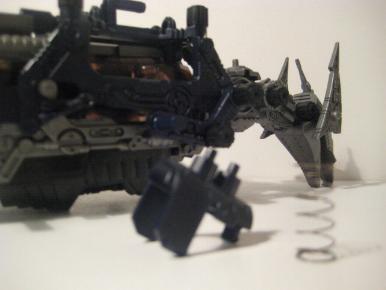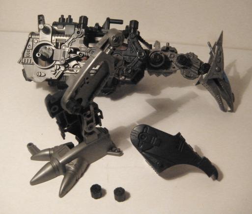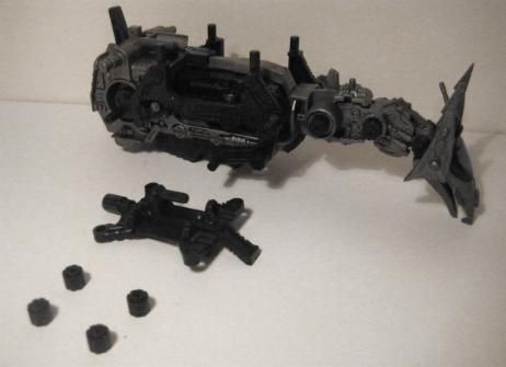 The wings are then attached to the unit via a pen that bolts through the main body, and the arm which is positioned on the "bolt" on the top of the main body frame.