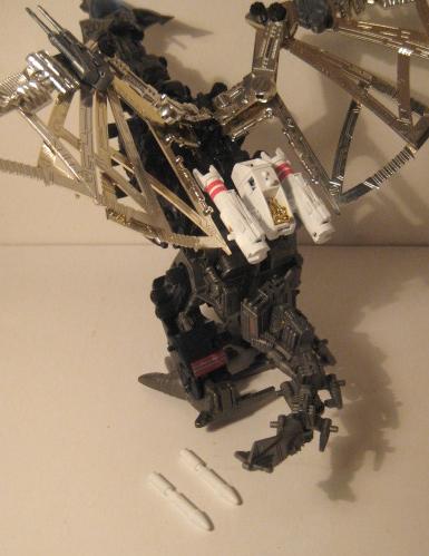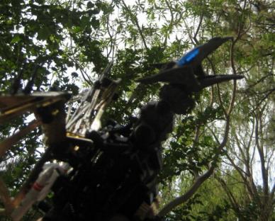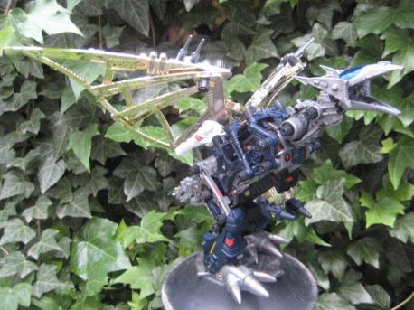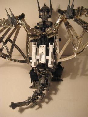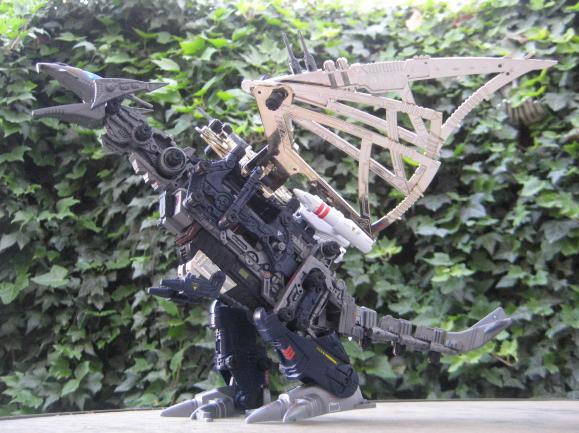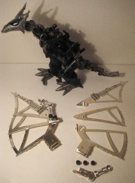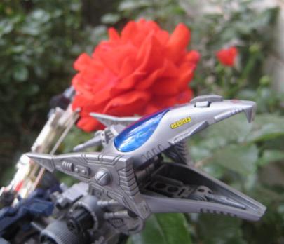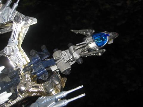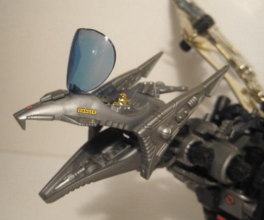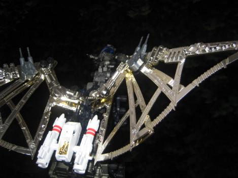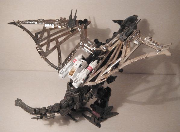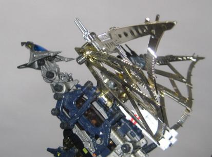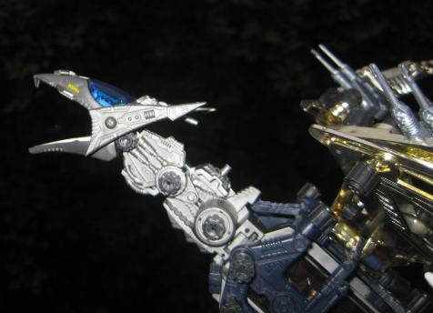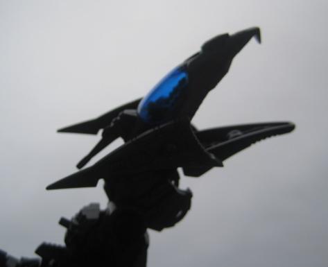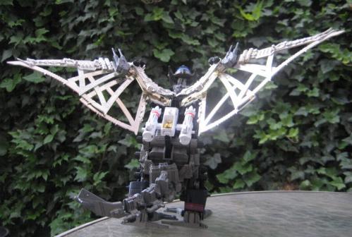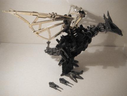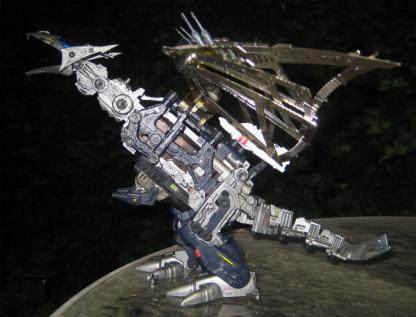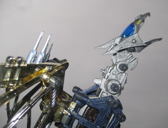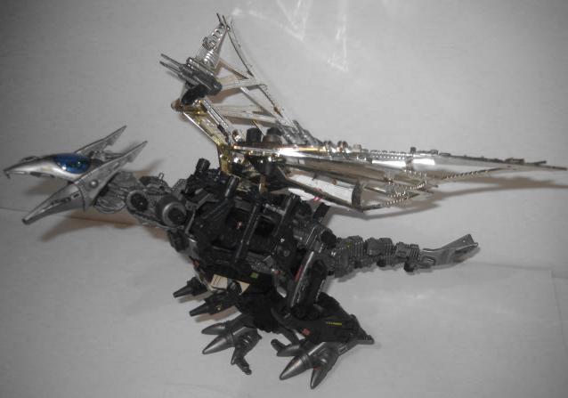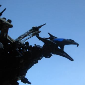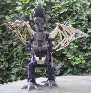 . Pictured below are the plethora of pictures of the finished OJR Zoids Salamander F2. It is everything that I could have imagined it would be, and somehow (to me) this does not seem as if it's just a simple color swap. The gold lends a certain sense of royalty to the piece, and the blue cockpit brings much more "life" to the head of this Pterosaur. Somehow separating itself from "just another re-issue", Salamander F2 is worth actively seeking to add to any collection, if you can find one...or if TOMY decides to re-issue this beastie. I spent some time taking some outside pictures, as F2 just seems to deserve a few aerial type shots. I was lucky enough to get a stormy day for the perfect background.