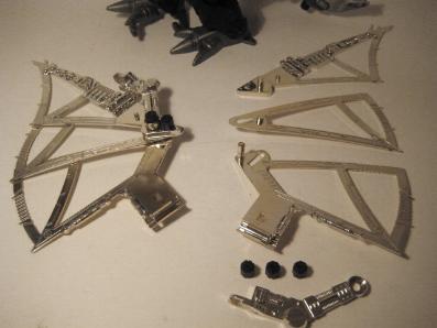 The wings are then built. Each wing consits of four segments (including arm) that are held in place via three caps.