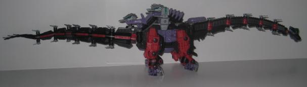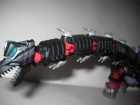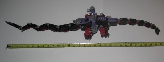 Although I dont think much of the layout of the Hasbro sticker scheme, the black and red Seismosaurus is a really nice piece. It's really serpentine in nature, and the design flows well and is good at being what it is. Coming in at approx. 30" in length this bad boy is going to need some room to display properly. A worthy addition to any collection, don't miss it!