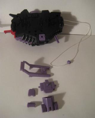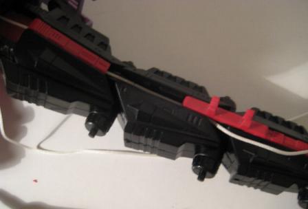 The final tail segment contain a triple cannon is fitted. The bead on the string fits into the end of this piece anchoring the pulley system.