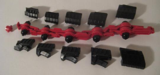 With both sets of legs in place the tail is started. There is a pulley incorporated into each tail segment. The pulleys go in order from largest to smallest.