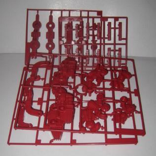An interesting thing that I noticed when I was gathering the sprues getting ready for the build is that there are two different shades of red sprues. The smaller ones are a deeper red, and the larger ones are a brighter red. Although hard to capture in a picture you can see the difference below: