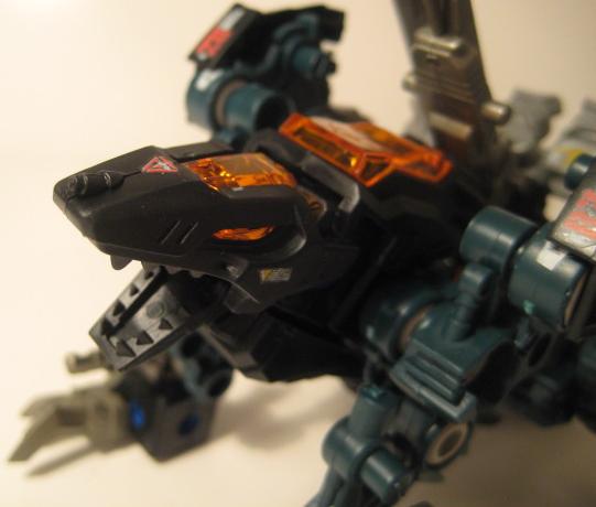 Shadow Arm Lizards is the 2003 release by Yuji Kaida. The colors were refinished and an extra frame was added. The extra frame (from Cannon Diver) contains a large back mounted cannon, and some large search lights. Shadow Arms is the same unit as DA Lizards. Leo Blaze and Unenlagia look totally wicked in their re-issued colors: black (my favorite) and green. I found the construction of the front legs to be very difficult yet again, and I think the leg construction part of the manual could be written much better. The end result is totally awesome, and at the current time this piece can be picked up at really great price, don't miss it!