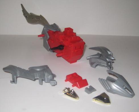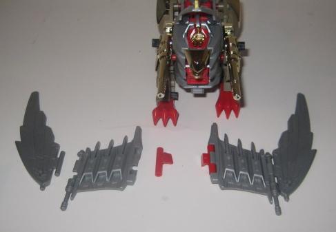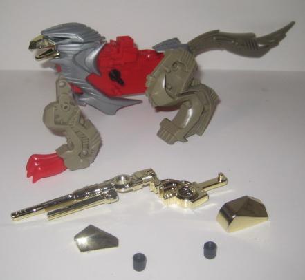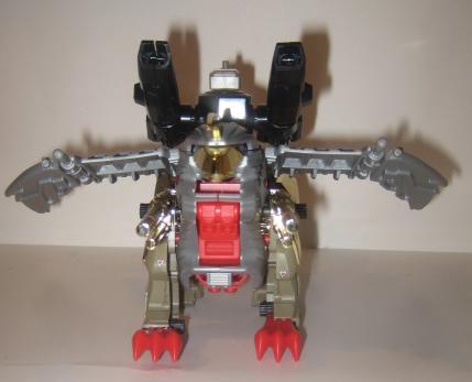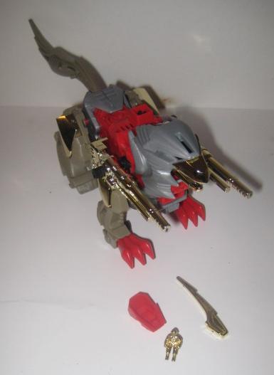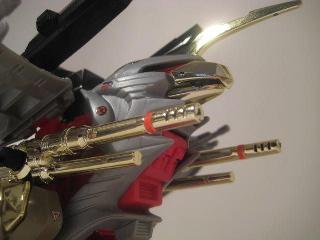 Phrases like these always teleport me back into childhood, and are a big part of why I enjoy the Tehcno-Zoids line so much. Another part of my partialness towards this line is the chrome, of which there is no shortage on this unit. The cannons, beak, and horn are all finished in flashy gold chrome. Aside from the aesthetic appeal the Storm Tiger is also significant in that it's the only unit to ever had been re-released out-side of Japan with a standard Grade Up Unit included. The Storm Tiger sports the GU-01 or Hyper Beam Gun. This unit was originally intended for Hound Soldier, and features a pair of large Beam Cannons. Another unique aspect is the motor unit that has to be built, old school style and is not a complete unit with switch that comes with the Hasbro release, but instead hails back to it's Grade Up roots. More on this later.
